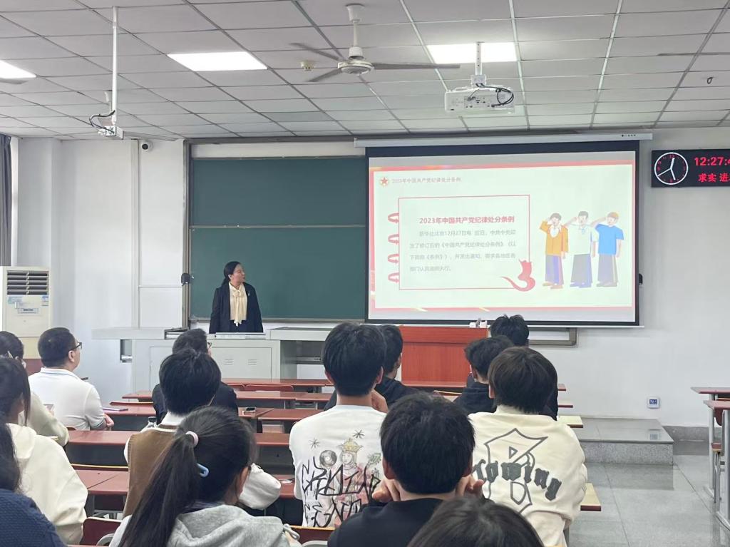 分党校第43期预备党员培训班在武教B202开展了一场严肃且深刻的党课学习。学院副院长范梅英以《中国共产党纪律处分条例》为主题,为全体新发展预备党员深入解读党纪党规,强化纪律意识,筑牢思想防线。