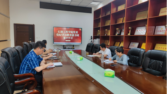党纪学习教育读书班在石油科技大楼C111举行集中学习研讨。院党委书记张伟主持,中心组全体成员参加。