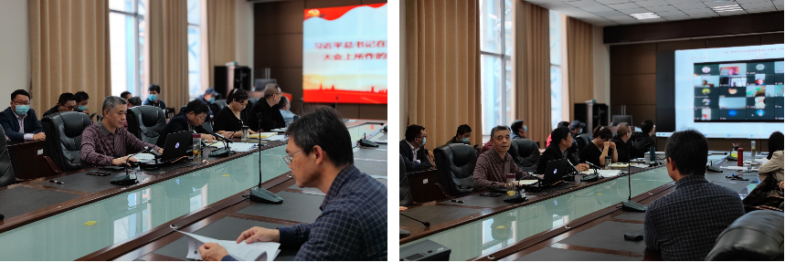 在B113会议室召开全体教职工大会,深入学习贯彻党的二十大精神。院党委书记张光明传达党的二十大精神并作学习贯彻部署讲话,全体教师党员通过“线上+线下”相结合的方式参加。