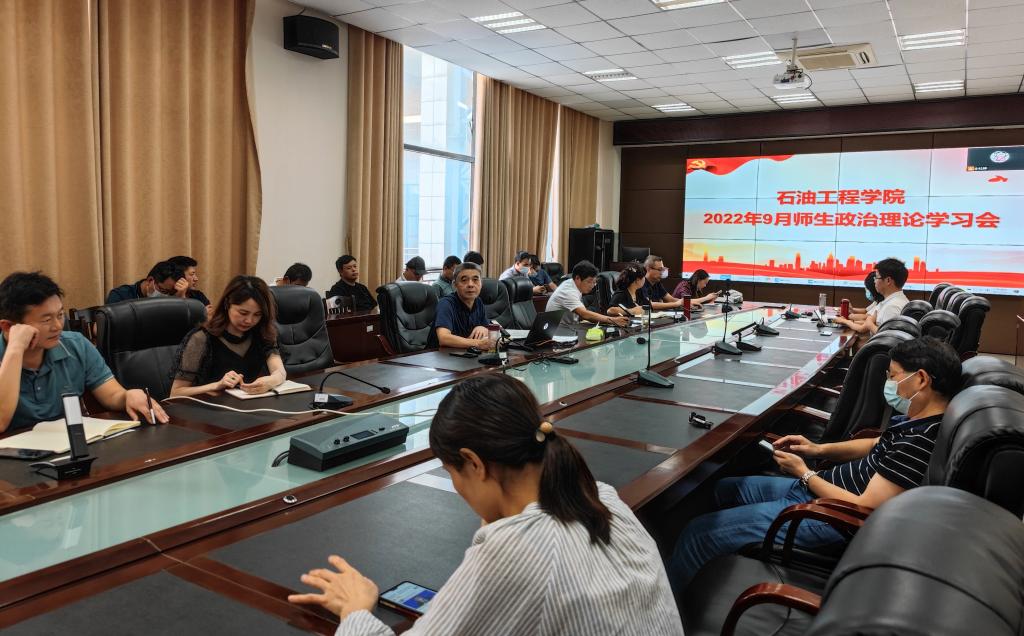 在石油科技大楼B113会议室开展9月教职工政治理论集中学习,院党委书记张光明主持,全体教职工参加本次活动。