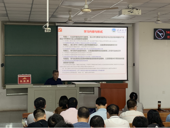 9月9日下午,学院在武汉校区教学培训楼B103召开9月份政治理论学习会,全体教职工和学生党员参加了集中学习,会议由党委书记张光明主持。