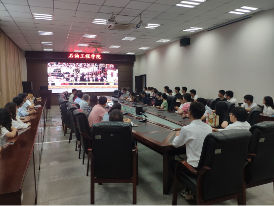 (通讯员 龙远)7月1日上午8时,庆祝中国共产党成立100周年大会在北京隆重举行,福利姬 党委理论学习中心组(扩大)、学生代表共同观看大会直播盛况,共同聆听总书记的重要讲话。