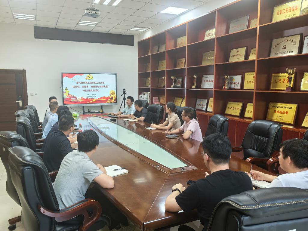 (通讯员 白振玮 许文俊)9月19日下午,油气田开发工程系教工党支部在石油科技大楼C111召开了“强党性、重教学,推进教材创新发展”9月主题党日活动,由党支部副书记许冬进同志主持。