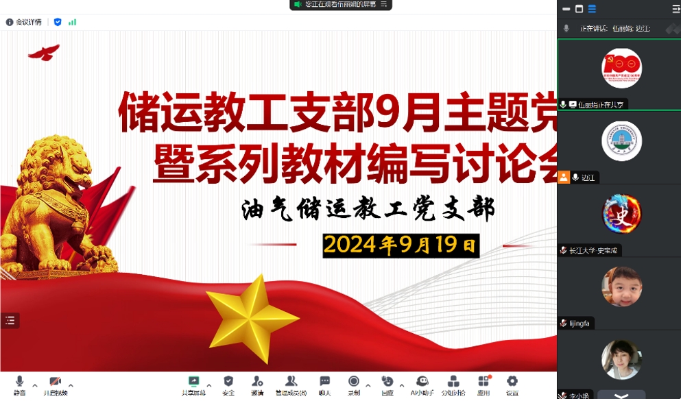 (通讯员 伍丽娟)9月19日下午,油气储运工程系教工党支部线上开展了9月支部主题党日活动,活动由支部书记边江主持,全体党员同志参加。