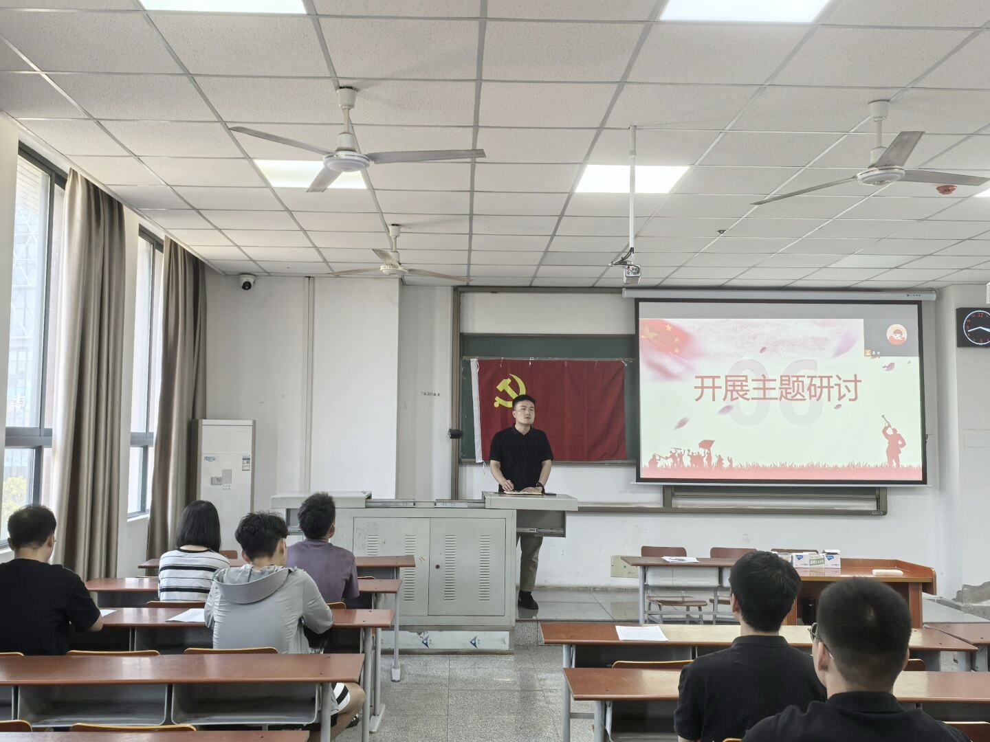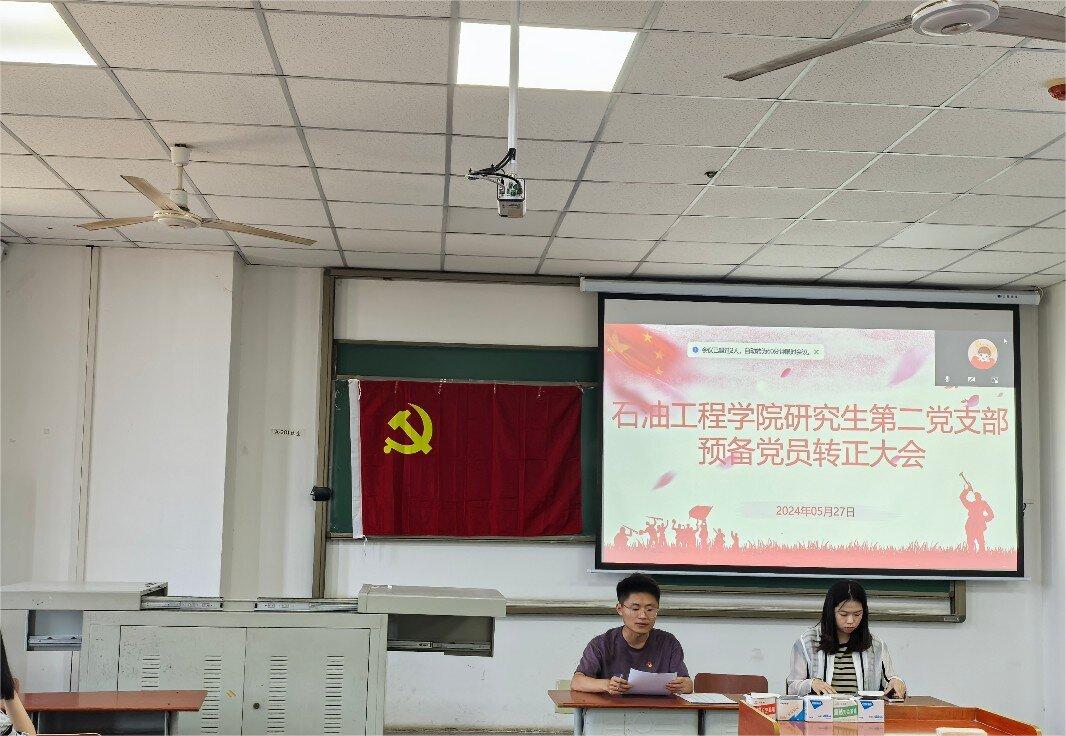 本科生第二党支部于武教A-201召开2024年上半年预备党员转正大会暨5月主题党日活动,由张新龙同志主持,支部书记陈金建和全体党员同志、全体入党积极分子参加。