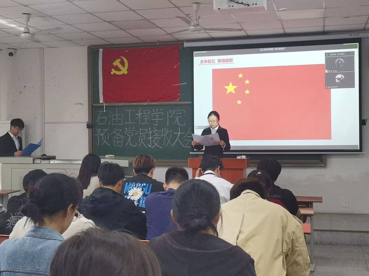 本科生第二党支部在武教A-105开展三月支部主题党日活动暨毕业生预备党员接收大会,本次会议由王京主持,支部书记周晓峰及支部党员参加。