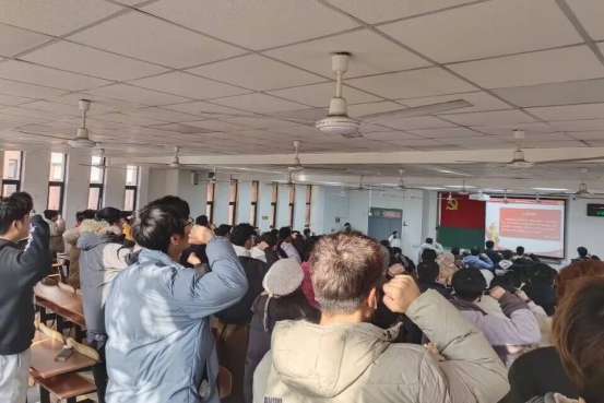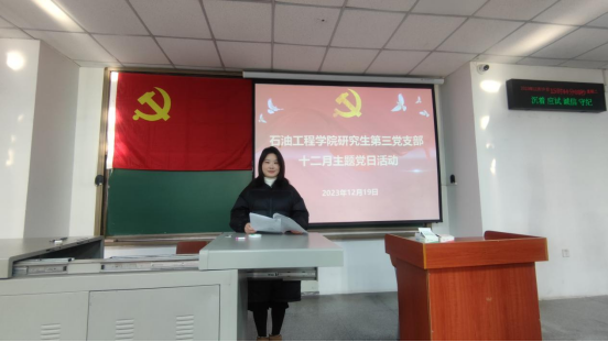 研究生第三党支部在武教B-105召开十二月主题党日活动。本次会议由支部书记朱小露主持,支部党员全员参会。