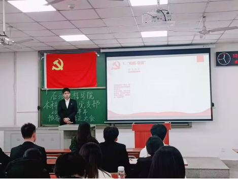 (通讯员 李万达/文 魏莉桐/摄)11月25日中午,本科生第二党支部于B210召开2023年下半年学生预备党员转正大会,本次大会由于泽,房雨泽两位同志主持。