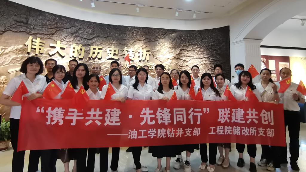 钻井支部前往江汉油田工程院储改所支部开展“携手共建•先锋同行”(1+3)联建共创暨“学思践悟强党性 实干担当创业绩”5月主题党日活动。储改所支部书记朱志芳、主任、副书记张凡、院专家肖佳林,钻井支部委员余义兵、孔祥伟等20余名同志参加本次活动。