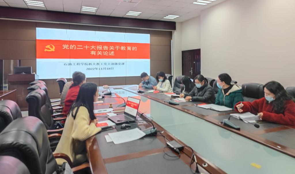 本次大会上,支部书记杨小玉讲授了《党的二十大报告关于教育的有关论述》主题微党课。她对二十大报告中有关教育的新提法、新要求进行了阐述交流,号召机关支部党员认真学习贯彻二十大精神,在积极投身教育改革发展的实践中贡献长大力量。与会党员结合工作实际,针对认真学习宣传贯彻党的二十大精神,积极发表学习体会。院党委副书记刘娥强调,在党的二十大精神指引下,机关党支部教职工要全面贯彻党的教育方针,落实立德树人根本任务,强化政治站位,主动服务大局,抓实抓细工作,争创一流业绩。