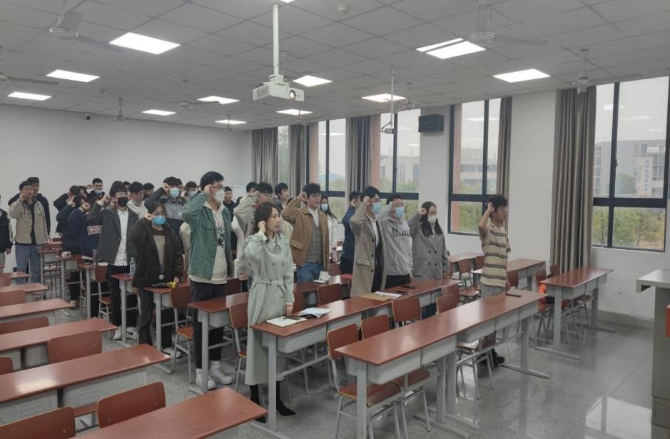 会议伊始,全体党员面向党旗庄严宣誓,重温入党誓词。随后,同学们集体学习党章及习近平总书记系列重要讲话等,紧接着对如何始终保持“拼、抢、实”的状态和工作作风进行了积极的讨论发言。