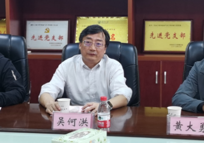 与武汉新锐合金工具有限公司校企联合实验室建设进程, 10月30日,武汉新锐合金工具有限公司董事长吴何洪、副总裁刘勇、技术中心主任余立新、副主任李宁、湖北江汉石油仪器仪表股份有限公司总经理黄大勇和总工程师佘理鸿一行来院进行交流。学院院长宇波、常务副院长李忠慧、党委副书记张昊、副院长张顶学、副院长范梅英、副院长郑双进、实验中心主任马超、杨冬教授、喻高明教授及相关老师参加交流会。