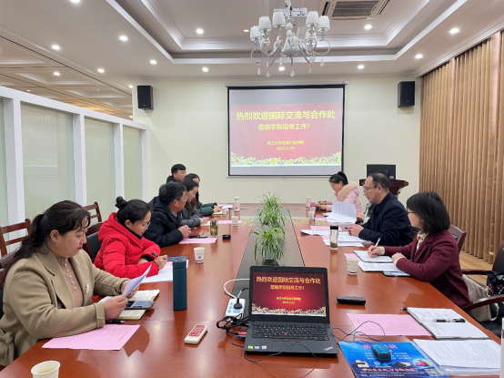 近年来十分重视国际化工作,一定要将国际化建设工作落实落细,并就合作办学机构与项目申报、学科创新引智基地建设、师生出国(境)项目等工作,与国际交流与合作处相关负责老师进行了深入交流。