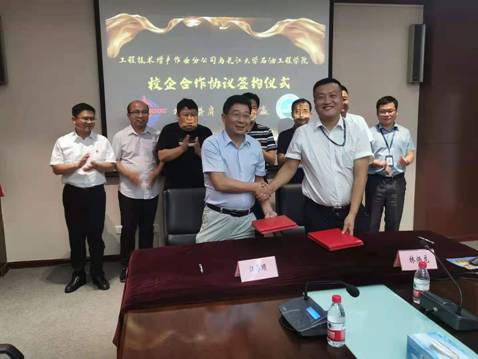 与中海油能源发展股份有限公司工程技术增产作业公司(下简称“中海油海能发增产作业公司”)举行了“海上油气田稳油控水技术创新与实践基地共建协议”校企合作框架签约和揭牌仪式,签约和揭牌仪式在中海油海能发增产作业公司会议室进行。