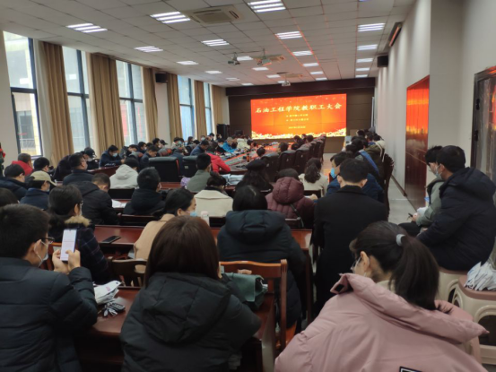 新学期新气象,新面貌新作为。2021年2月28日下午,学院在石油科技大楼B113召开新学期教职工大会,学院全体教职工参加会议,会议由党委书记张光明主持。