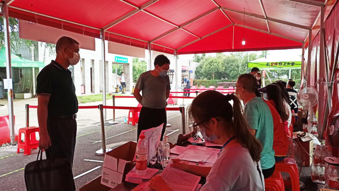 教职工和志愿者们用温暖的问候迎接油油们“回家”。6月15日,安静了几个月的校园再次热闹起来,首批返校毕业生怀着激动的心情,严格按照学校防疫要求分批、错峰的返校原则回到暌违已久的校园,办理毕业离校手续。