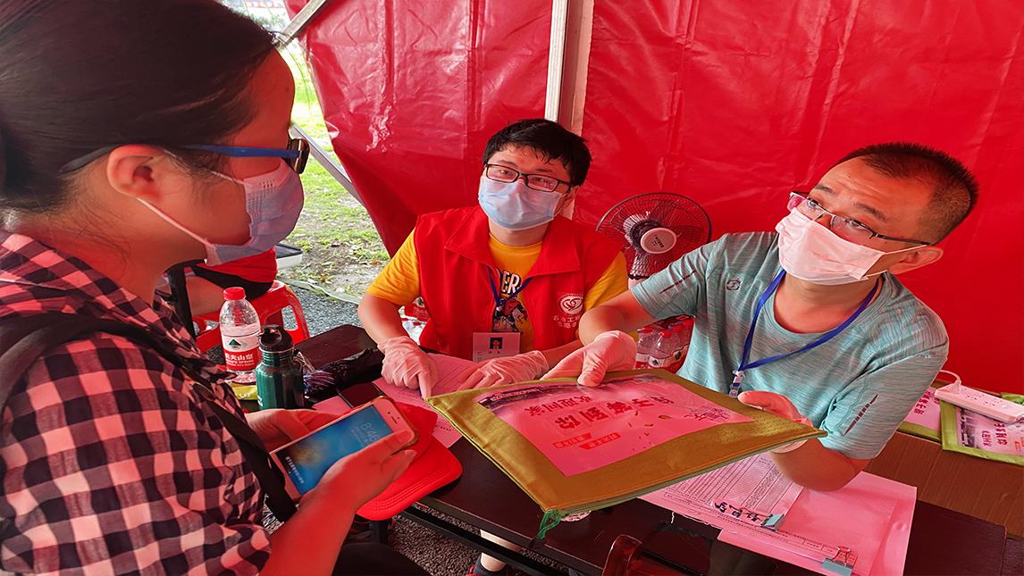 返校的油油们需要通过行李消杀,更换口罩、学院报到,核实信息、医疗保障,核酸检测、门禁测温,进入宿舍等流程,才可以入住公寓。油油们在志愿者和辅导员的引导下,这一切都显得井然有序,有条不紊。油油们在学院报到点还领取返校健康大礼包一个,内容丰富:口罩、餐券、温度计、核酸免费检测卡、手套、免洗洗手液、风油精等,应有尽有。“老师们真是体贴,周到,连夏季防蚊虫叮咬必备神器风油精都有,暖心的不要不要的......”返校毕业生郑春玲从辅导员史永波老师手里接过健康包时激动地说道。