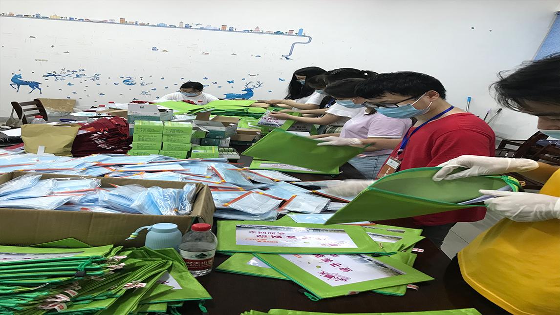 油油返校前,学院在学校新冠肺炎疫情防控工作领导小组和2020届毕业生返校工作领导小组的统一领导下,不断完善学院毕业生返校工作方案,强化安全管理,做好物资储备,努力为学生提供精准、健康、暖心的返校服务。辅导员和志愿者们加班加点为毕业生准备绿色健康包和红色离校包,绿色代表油油们来的健健康康,红色代表油油们走的红红火火,寓意满满。