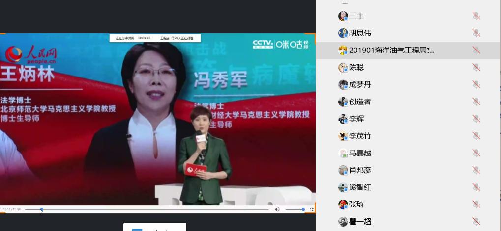 领导和全院本科生、研究生齐聚“云端”,与全国大学生一起,收看了这堂生动的思政教育疫情防控大课。各班级以QQ视频会议、雨课堂和直播观看和回看等形式开展课程活动,做到了1500余名本科生和研究生的全覆盖。