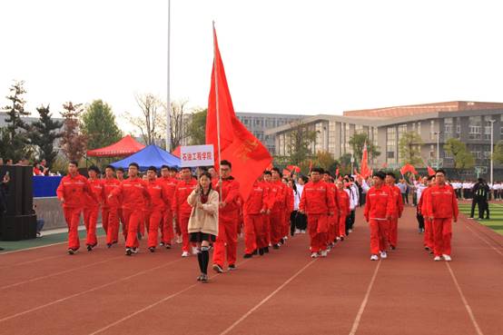 运动会开幕式于上午8时隆重举行,身着鲜艳红色油工服的51名油工学子和学院领导班子成员、教职工代表全院师生迈着铿锵有力的步伐,通过主席台接受检阅。在各学院方队的精彩表演和运动会代表的庄严宣誓后,运动会各项比赛随即展开。