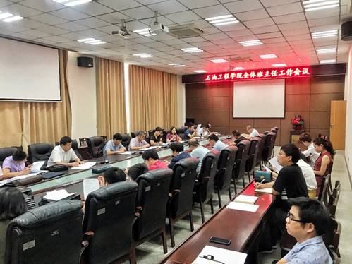 9月26日下午4时许,在石油科技大楼B113会议室,学院召开全体班主任会议。会上对近期学生工作情况做了通报,对安全及心理健康工作、“十一”国庆长假事宜、学生就业考研工作、本科生英语四级工作做了详细的安排,对下一步工作做了明确部署。会议由党委副书记刘娥主持,党委书记张光明、院长江厚顺出席会议,各年级本科生班主任以及学工办全体教师参加会议。