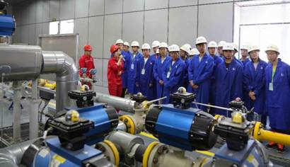 随后,同学们参观了川气东送工程武汉压气站、计量站以及输气站,了解了天然气的增压、调压、计量和输送等过程环节。在讲解员的带领下,大家还参观了公司现场运行设备,感受企业安全生产和绿色环保理念。