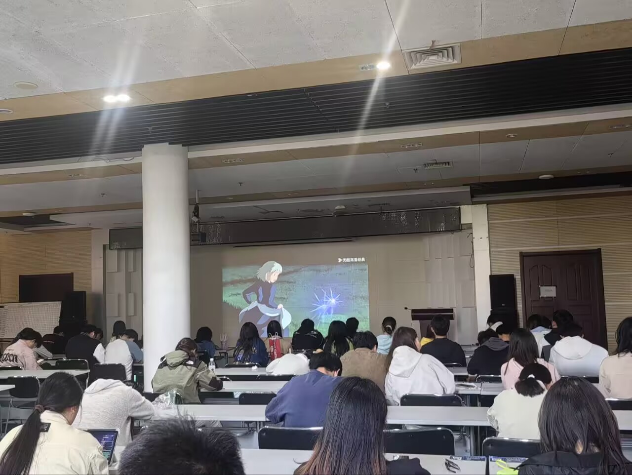 阅读学社(武)第四次联合举办“观影明心”心理电影沙龙系列活动,本期播放的影片是《哈尔的移动城堡》。活动由储运22302班商玲珑主持,共99名同学参加。