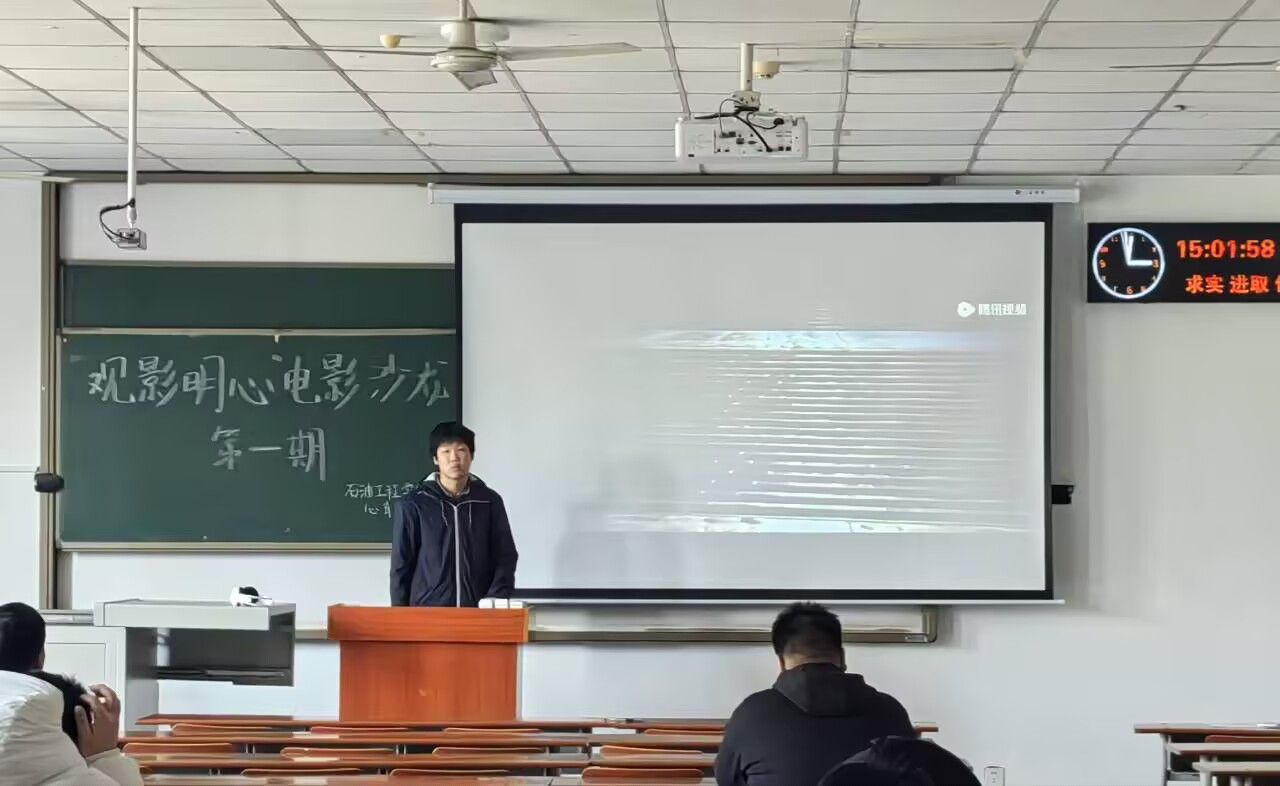 在武汉校区A教108举办学院心育特色活动——“观影明心”心理电影沙龙,本期播放的影片是《海上钢琴师》,由心育部的学生干部们带领同学们透过电影去启迪大家如何坚守自己的内心和本真以及如何走出“外面世界的牢笼”。活动由油工22308班钟传延主持,共72名同学参加。