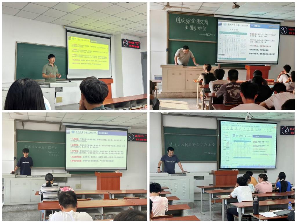 各班班主任围绕放假安排、学习情况及安全注意事项召开国庆假期前安全教育主题班会。在班会上,班主任提醒同学们按时返校,认真填写离返校信息登记表;告知同学们重修报名的相关事宜并特别提醒毕业班的同学关注毕业相关要求及考研事项。安全无小事,责任在大家,班主任着重强调安全注意事项,并通过安全微视频、典型安全事故案例分享等形式,提醒同学们重视人身安全、交通安全、财产安全等安全常识,持续加强防诈骗意识。