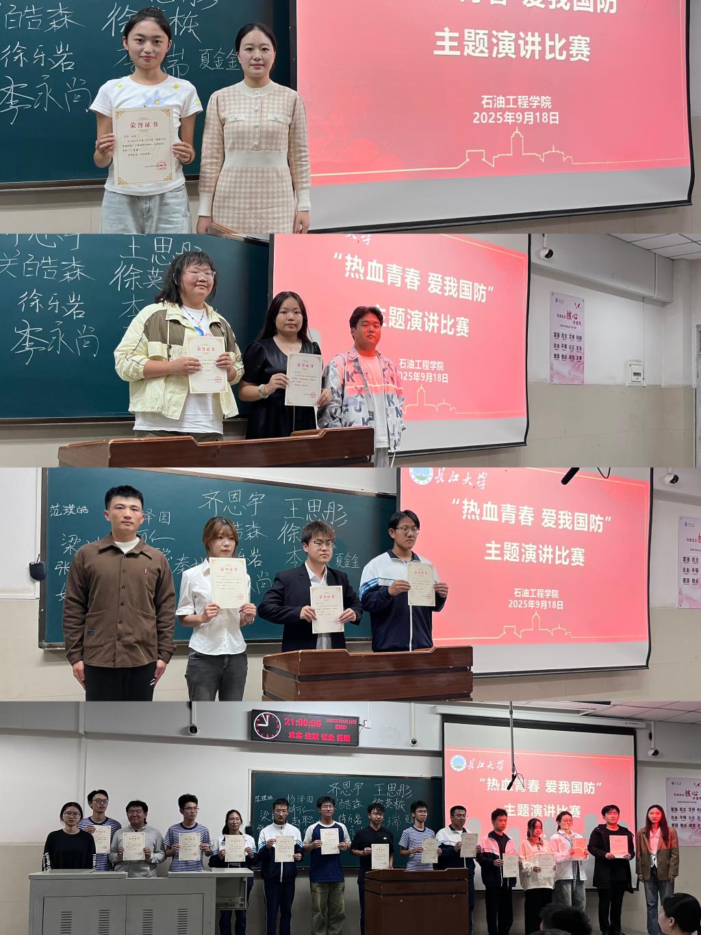 于12教302教室成功举办“热血青春,爱我国防”2025级新生主题演讲比赛初赛。19名参赛选手以饱满的热情和深刻的思考,抒发了对国防事业的理解与热爱,展现出石油学子昂扬的精神风貌和坚定的理想信念。本次活动由储运12503班周宇欣同学主持,2025级新生辅导员周雨薇、陈金建,兼职辅导员陈真、崔姊威以及2025级全体新生共同参与。