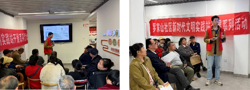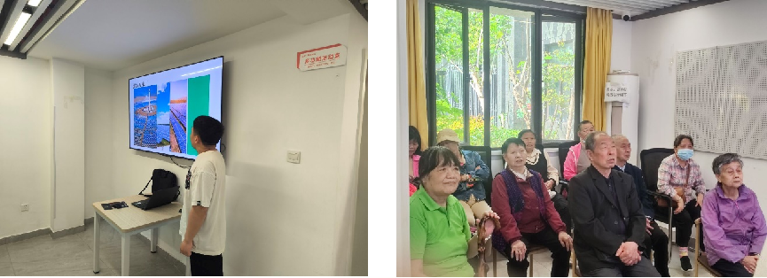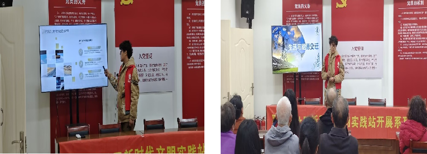 黑油能源科普宣讲队的队员前往罗家山社区开展能源科普宣讲活动。主讲人李富淼以身边的新能源为切入点,结合老年人日常场景,用通俗语言介绍光能(太阳能热水器、光伏路灯)、风能(小型风力发电原理)、水能(水力发电与家庭节水)的应用价值,然后结合国家基建,向老人们介绍我国在新能源领域建设的诸多成就和宏伟蓝图,最后以发展新能源的意义作结,引发了老人们的深深共鸣,青年智慧与银发经验碰撞,科技之力与人文关怀交融,这场“青绿对话”为社区可持续发展注入新活力。