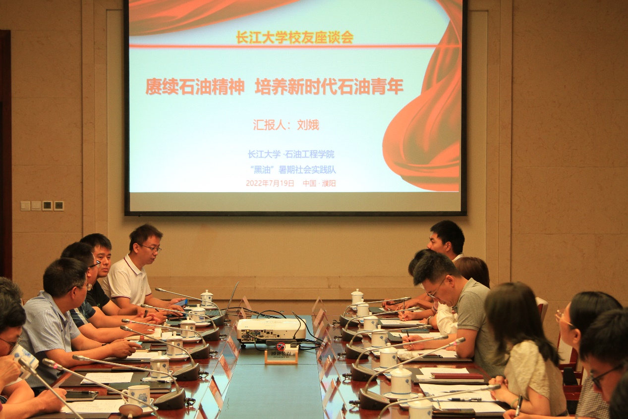 畅所欲言,薪火相传。在校友提问交流环节中,实践队员们争先恐后,踊跃发言,油田领导以及首席专家们镇定从容,耐心地为队员们一一解答。首席专家蔡其新在回忆起踏上前往濮阳的征程时的场景时表示,“重要的是一种终身学习的态度,初入企业,尚且懵懂无知,背起行囊,常有书在侧。”现如今,各种挑战和需求更有利于青年完善自我,增长才干,不管是非常规油气田、万米超深层油气、储气库群、CCUS战略都需要石油青年接下接力棒,把责任担当放在第一位,跑出下一个石油辉煌,取得更高的成果。