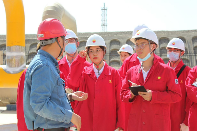 从历史的长河中娓娓道来,石油的故事经过了漫长的发展才有了今天的石油时代。我们在讲解员的带领下参观石油历史博物馆,那一张影像,一个物件,一块石头,无不映射出石油的历史痕迹。令我印象最为深刻的是那摆放整齐地一排排的油芯。在那小小的油芯背后,是塔里木石油人夜以继日的辛苦劳作,是塔里木石油人不辞辛苦绘制着一张张刨面图,是塔里木石油人对石油深沉而热烈的热爱。“只有荒凉的沙漠,没有荒凉的的人生。”进入塔里木油田时,引入眼帘的就是这几个大字,五天的旅程结束后,离开塔里木,视野的最后依旧是它们。只不过比当时多了一份敬佩,多了一份感动。那种敬佩和感动揉进了骨子里,让我对身着红色工作装的人都有一种“天然滤镜”,一直觉得他们是最可爱的人。与石油工作者接触交流的五天里,我更被他们身上的“家国情怀”所感动,为了更快的实现我国石油战略目标,加快完善石油战略储备制度,基地中的许多人一年里回家的次数屈指可数。他们“一家不圆万家圆”的奉献令我和同伴们感动了许久。担当诠释忠诚,用实干诠释尽责,用有为诠释履职,用友善诠释正气。
